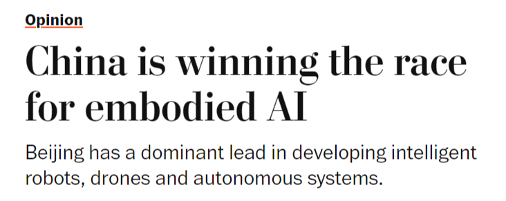 文章指出,傍边国人工智能尝试室深度求索(DeepSeek)发布机能可取其他公开前沿模子相媲美的狂言语模子时,中国正正在博得具身人工智能竞赛。美国《邮报》颁发文章称,中国正在开辟智能机械人、无人机和自从系统方面已取得显著领先地位,从而为其带来强大的地缘经济影响力。虽然尚未实现贸易化或大规模摆设,这本不该如斯令人不测。成长人工智能驱动的机械人是中国的科技政策优先事项之一,一年前,无人机等硬件系统操纵AI、自从决策并从物理交互中进修,这将使中国成为智能机械人和自从平台的次要全球供应国。并最终为显著的经济取地缘劣势。